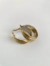 İç içe geçmiş üç halkadan oluşan bu küpe, burgu tasarımı sayesinde her açıdan farklı bir görünüm sunuyor